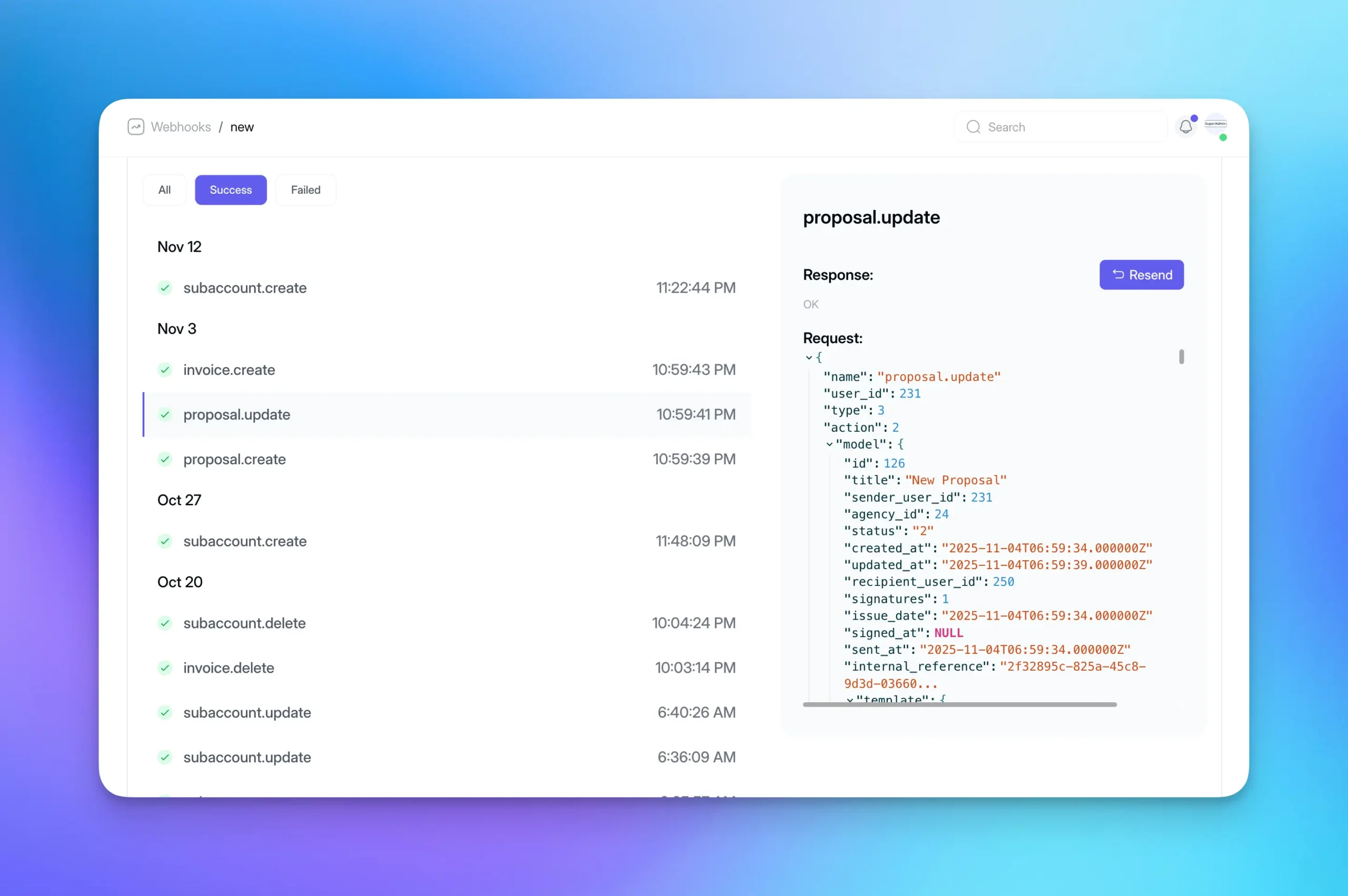Webhooks with parent-child broadcasting We just shipped webhooks. Set up one parent webhook, then broadcast events to multiple child URLs. This means you can easily send the same events to your logging service, your analytics tool, and your custom integrations without duplicating webhook configurations. Way cleaner than managing a dozen separate webhooks.